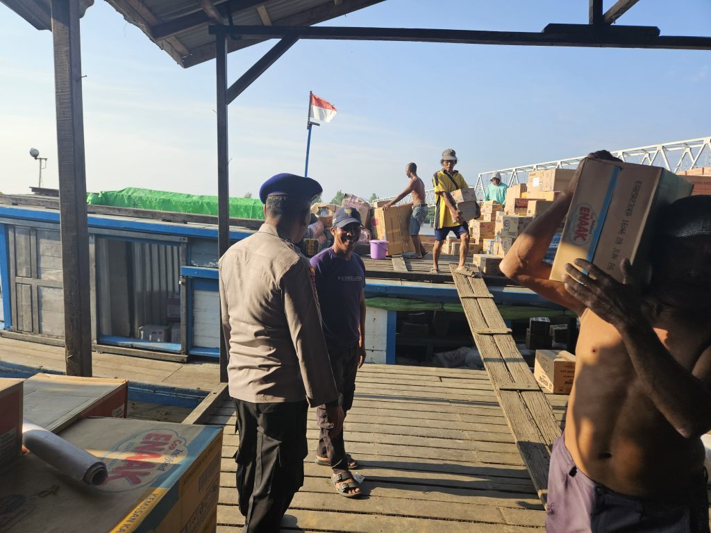 Komandan KP VI-10-10 teluk melano melaksanakan pengamanan dan pengawasan (PAMWAS) terhadap kegiatan bongkar muat barang di pelabuhan pasar rakyat teluk melano Kegiatan ini bertujuan untuk memastikan proses bongkar muat barang berjalan dengan tertib dan aman, serta mencegah terjadinya pelanggaran hukum, seperti penyelundupan atau kegiatan ilegal lainnya.