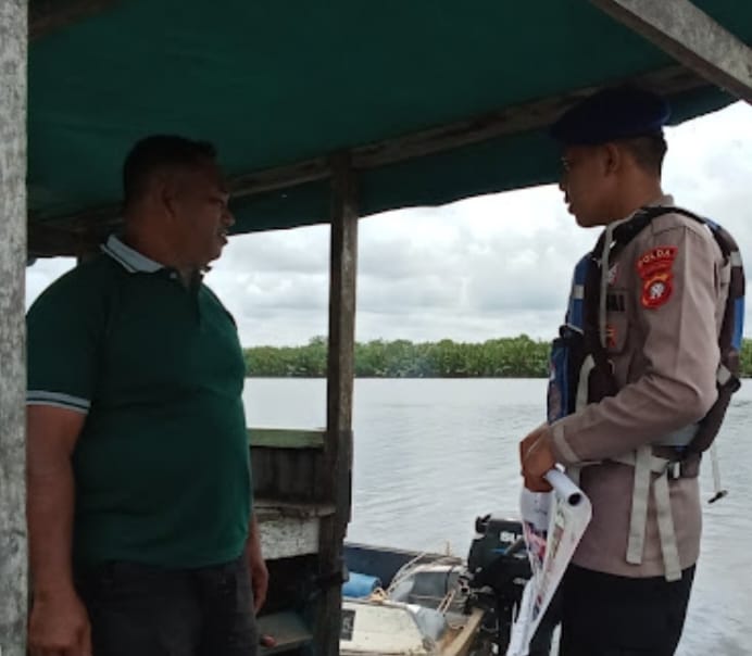 KP VI-10-15 Natai Kuini melaksanakan kegiatan penyampaian pesan kamtibmas kepada motoris penyebrangan tradisional yang sedang beraktivitas di Sungai NatainKuini. Kegiatan ini bertujuan untuk meningkatkan kesadaran masyarakat akan pentingnya menjaga keamanan, baik di lingkungan sekitar maupun saat berada di atas kapal.