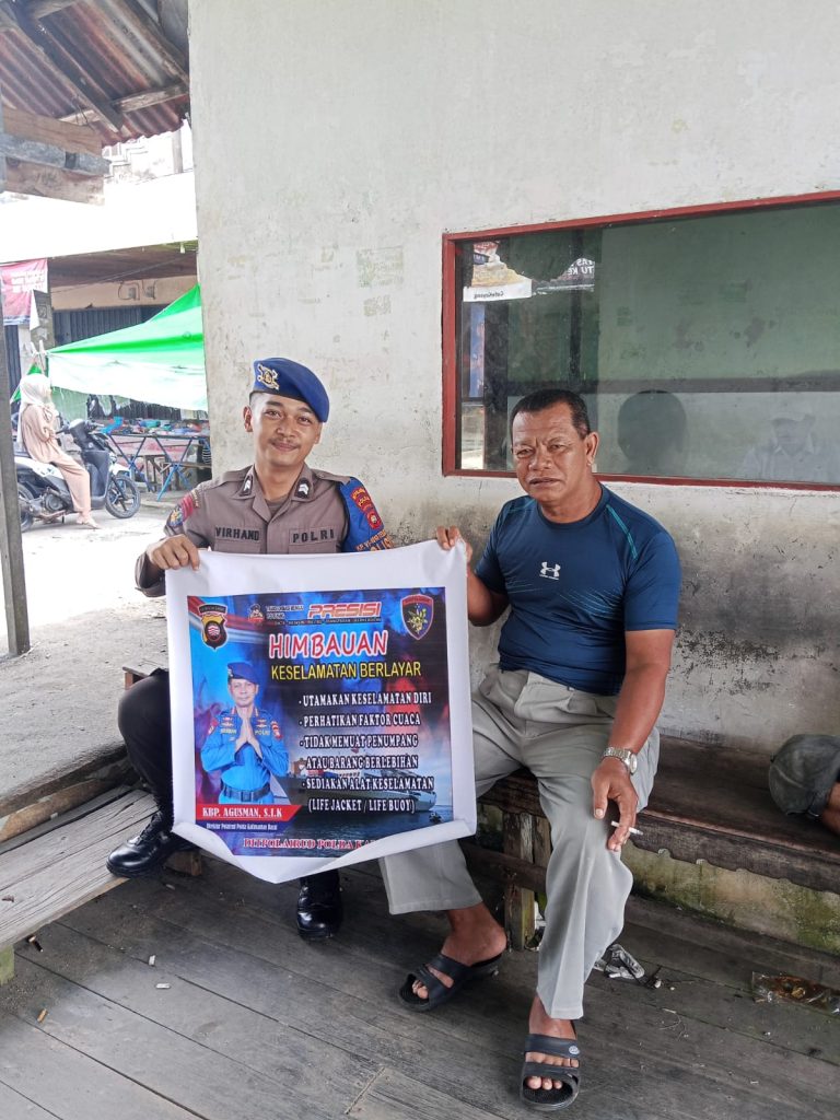 Anggota KP.VI-1010 memberikan himbauan dan binmas keselamatan berlayar kepada motoris speed boat yang sedang standbay dipelabuhan teluk melano agar tetap menjaga keselamatan serta selalu mejaga kamtibmas