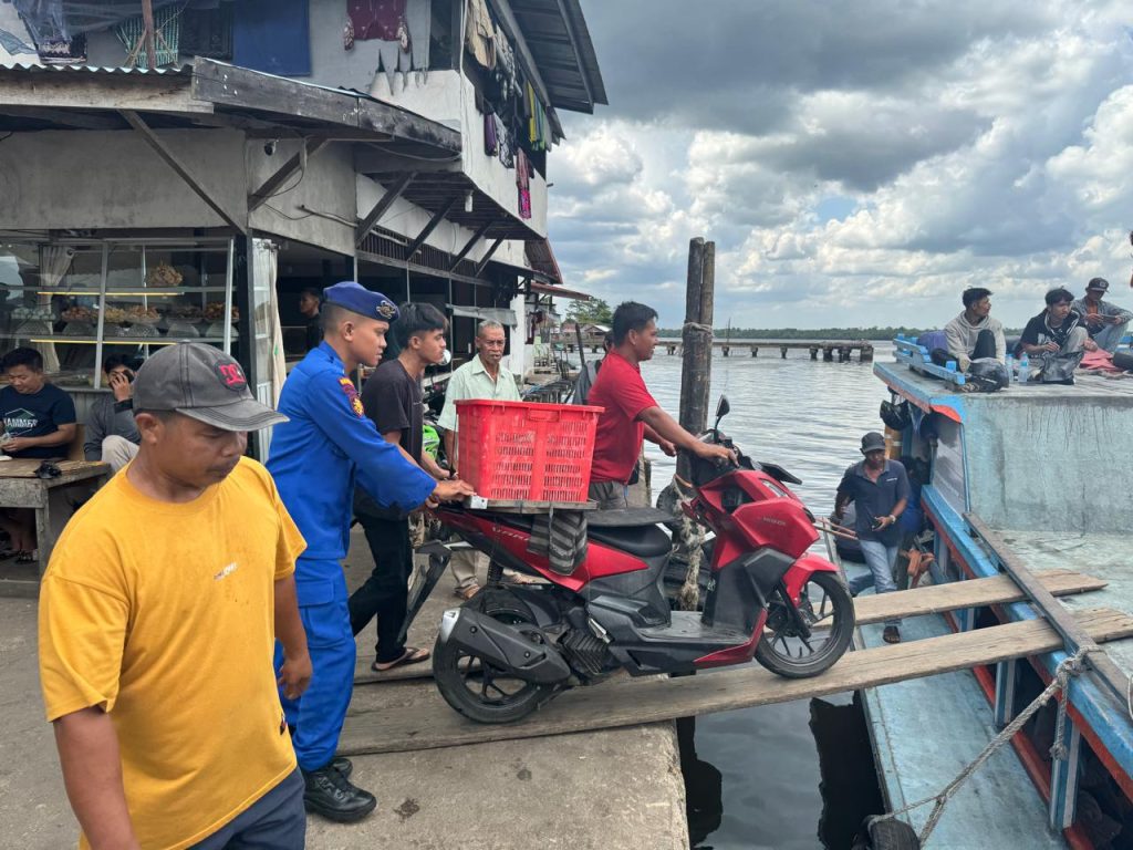 Petugas membantu mendorong dan menstabilkan sepeda motor warga agar dapat naik ke atas kapal dengan aman. Selain bantuan kendaraan, Brigpol Sinaga juga membantu mengangkat barang bawaan penumpang yang cukup berat untuk mempercepat proses keberangkatan kapal. Kehadiran personel di lapangan secara langsung mencegah terjadinya risiko kecelakaan seperti kendaraan tergelincir yang dapat menghambat jadwal penyeberangan.