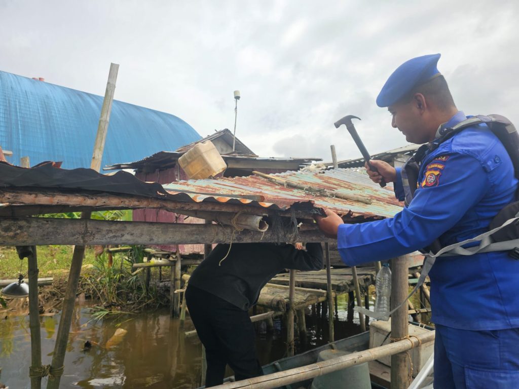 MUARA JUNGKAT – Cuaca ekstrem berupa angin kencang yang melanda wilayah perairan Muara Jungkat baru-baru ini menyisakan kerusakan pada fasilitas milik warga pesisir. Menanggapi kondisi tersebut, jajaran Direktorat Kepolisian Perairan dan Udara (Ditpolairud) Polda Kalimantan Barat melalui Unit Patroli Muara Jungkat bergerak cepat memberikan bantuan pada Jumat pagi (20/2/2026).