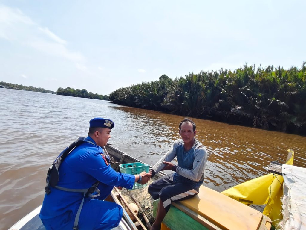 ANGGOTA KP.BIDARA VI-2002 MUARA KUBU MEMBERIKAN HIMBAUAN KAMTIBMAS PERAIRAN KEPADA NELAYAN/PEMANCING DI PESISIR MUARA KUBU YANG SEDANG BERAKTIVITAS DI PERAIRAN MUARA KUBU