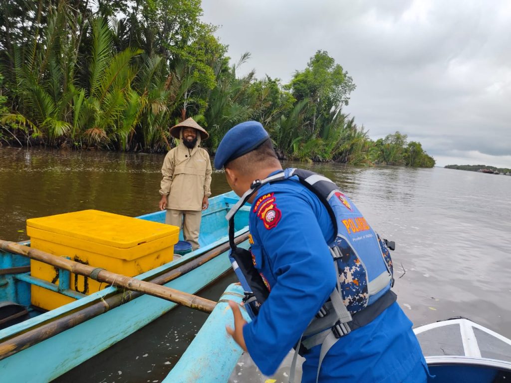 ANGGOTA KP.BIDARA VI-2002 MUARA KUBU MEMBERIKAN HIMBAUAN KAMTIBMAS PERAIRAN KEPADA NELAYAN/PEMANCING DI PESISIR MUARA KUBU YANG SEDANG BERAKTIVITAS DI PERAIRAN MUARA KUBU