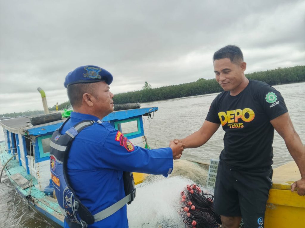 ANGGOTA KP.BIDARA VI-2002 MUARA KUBU MEMBERIKAN HIMBAUAN KAMTIBMAS PERAIRAN KEPADA NELAYAN/PEMANCING DI PESISIR MUARA KUBU YANG SEDANG BERAKTIVITAS DI PERAIRAN MUARA KUBU