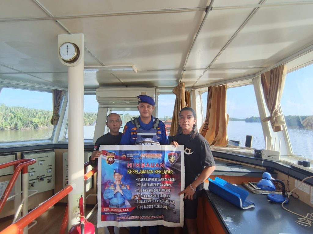 ANGGOTA KP. BIDARA VI-2002 MUARA KUBU MEMBERIKAN HIMBAUAN KESELAMATAN BERLAYAR KEPADA KRU KAPAL DI PERAIRAN MUARA KUBU