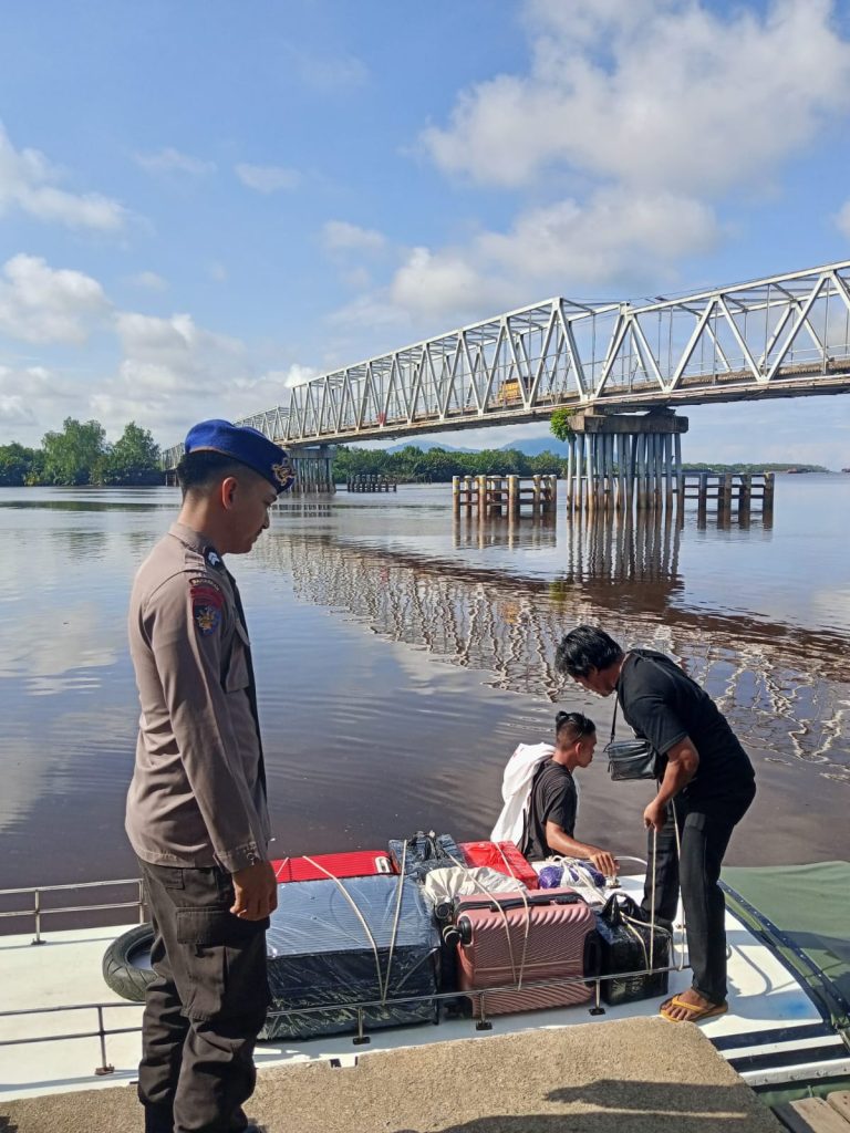 Anggota KP.Vl-10-10 melaksanakan giat pamwas keberangkatan speed boat dipelabuhan teluk melano supaya terciptanya situasi yang kondusif dan menghimbau kepada para penumpang yg akan menempuh perjalanan supaya berhati hati dengan barang bawaanya.