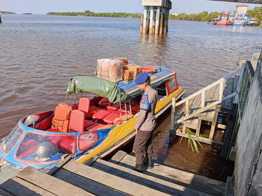Anggota KP.Vl-10-10 melaksanakan giat pamwas keberangkatan speed boat dipelabuhan teluk melano supaya terciptanya situasi yang kondusif dan menghimbau kepada para penumpang yg akan menempuh perjalanan supaya berhati hati dengan barang bawaanya.