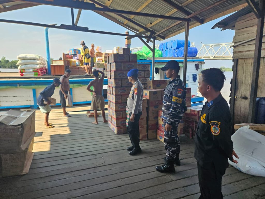 Komandan KP VI-10-10 teluk melano melaksanakan pengamanan dan pengawasan (PAMWAS) terhadap kegiatan bongkar muat barang di pelabuhan pasar rakyat teluk melano Kegiatan ini bertujuan untuk memastikan proses bongkar muat barang berjalan dengan tertib dan aman, serta mencegah terjadinya pelanggaran hukum, seperti penyelundupan atau kegiatan ilegal lainnya.