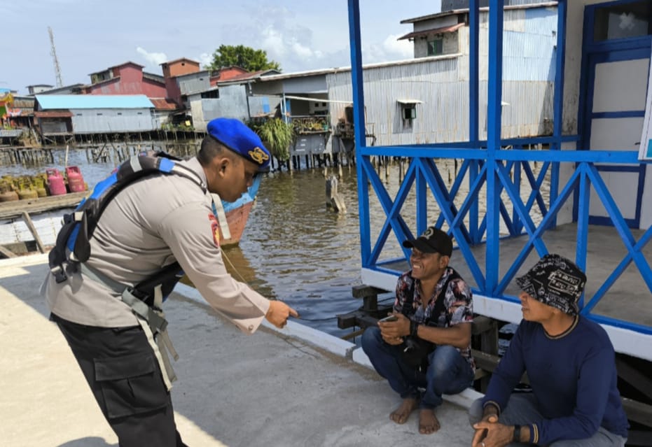 ANGGOTA KP.VI-10-16 KENDAWANGAN LAKSANAKAN GIAT BINLUH KEPADA WARGA PENGUNA JASA MOTOR PENYEBRANGAN DIPESISIR PERAIRAN KENDAWANGAN