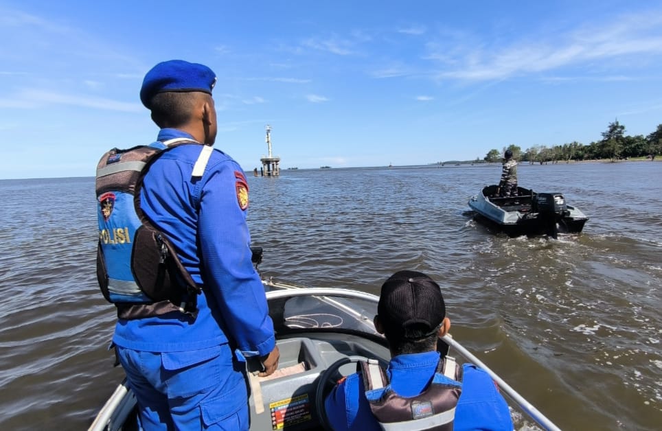 Anggota KP.VI-10-16 kendawangan melaksanakan SAR perihal tenggelam nya siswa MTS N 2 FILIAL Kendawangan yang berjumlah 3 orang saat sedang berenang disekitar pantai anjir