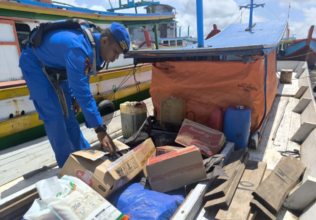 Anggota KP.VI-10-16 Kendawangan melakukan pengecekan barang-barang milik penguna jasa penyebrangan,
