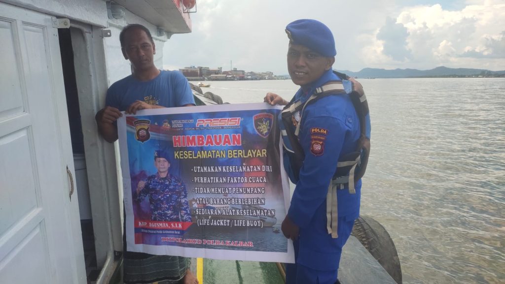Anggota KP.VI-10-16 Kendawangan memberikan himbauan keselamatan berlayar kepada Crew kapal diperairan Kendawangan
