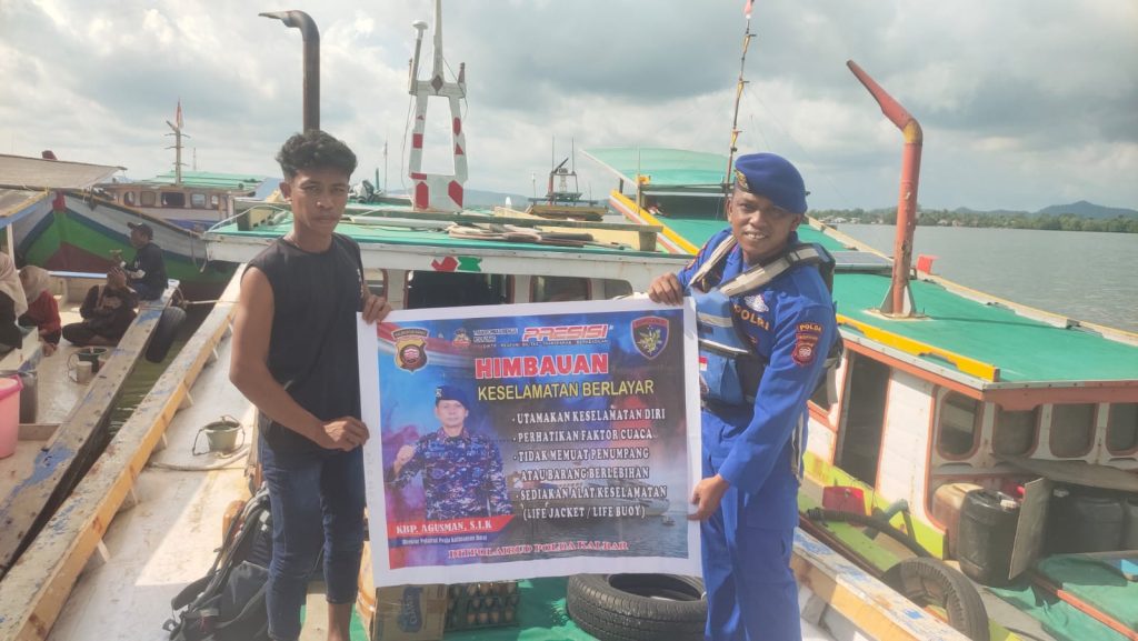 Anggota KP.VI-10-16 Kendawangan memberikan himbauan keselamatan berlayar kepada Masyarakat Pengguna Jasa Transportasi Motor Air diperairan Kendawangan,