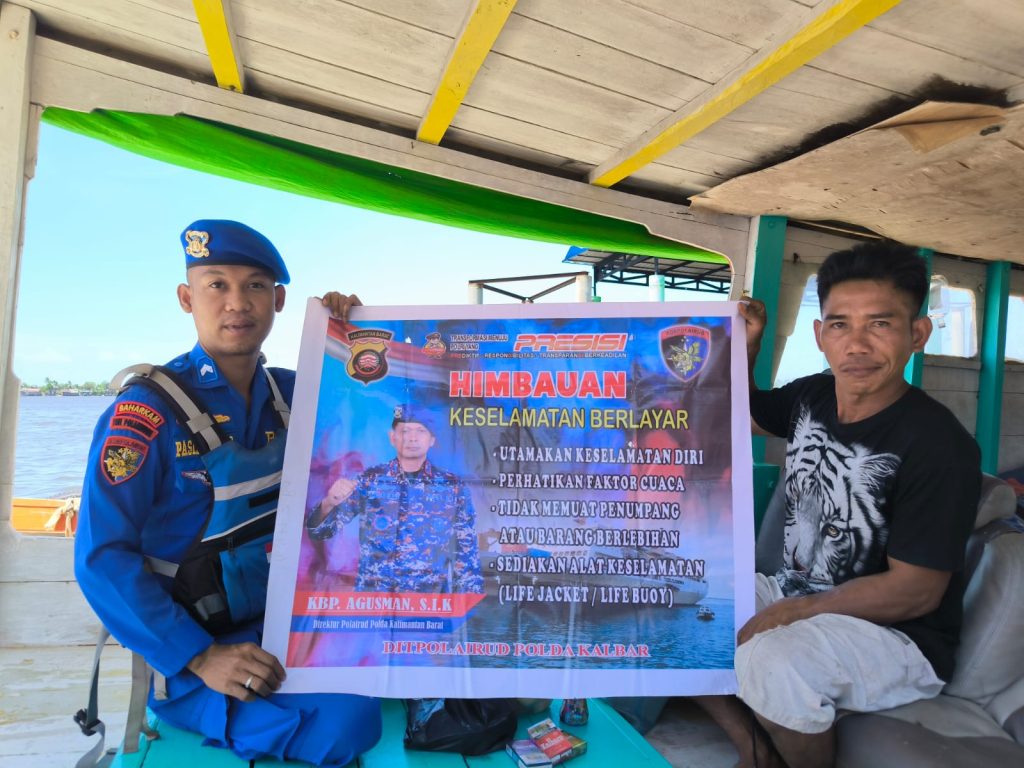 Anggota KP.VI-10-16 Kendawangan memberikan himbauan keselamatan berlayar kepada Motoris penyebrangan pesisir diperairan Kendawangan,