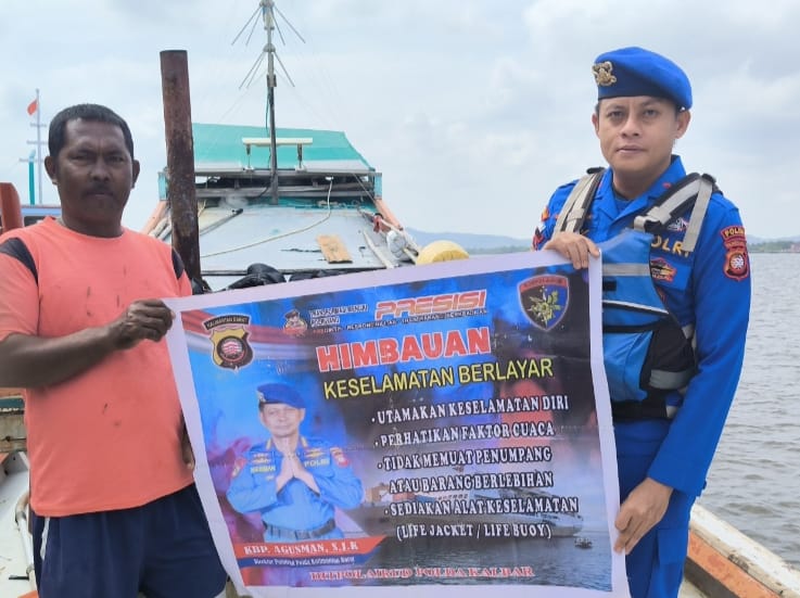 Anggota KP.VI-10-16 Kendawangan memberikan himbauan keselamatan berlayar kepada Motoris penyebrangan pesisir diperairan Kendawangan,