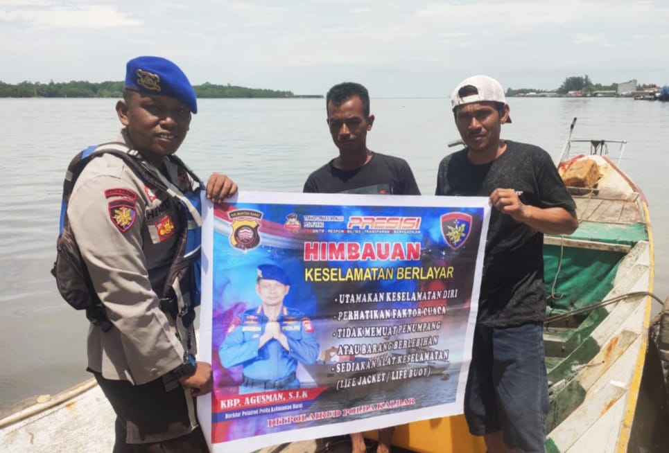 Anggota KP.VI-10-16 Kendawangan memberikan himbauan keselamatan berlayar kepada Nelayan pesisir diperairan Kendawangan,