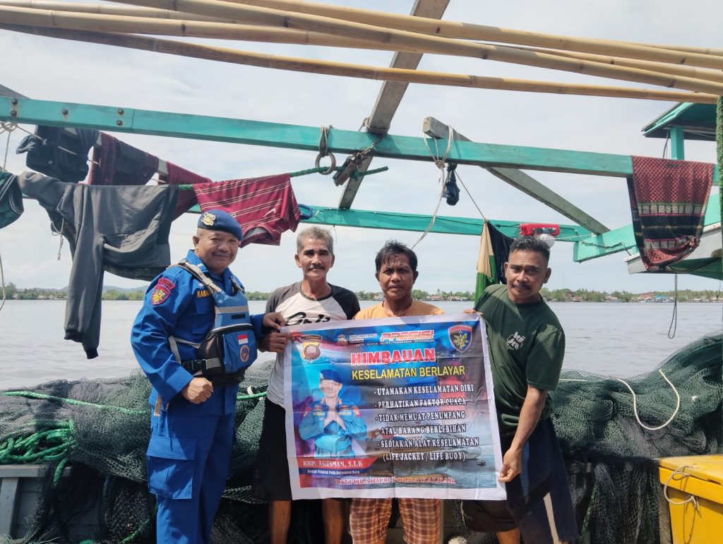 Anggota KP.VI-10-16 Kendawangan memberikan himbauan keselamatan berlayar kepada Nelayan pesisir diperairan Kendawangan,