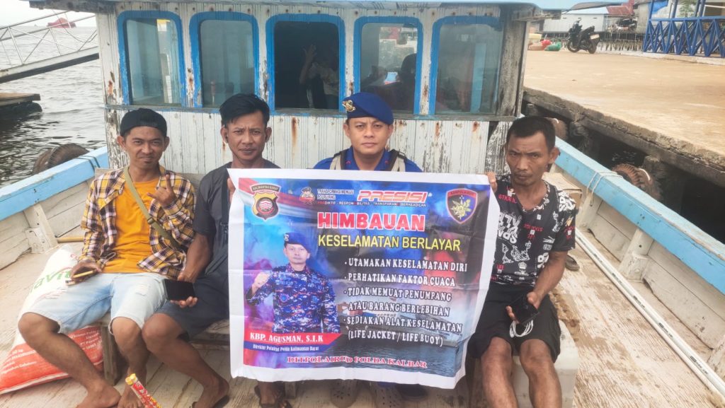 Anggota KP.VI-10-16 Kendawangan memberikan himbauan keselamatan berlayar kepada Masyarakat Pengguna Jasa Motoris penyebrangan pesisir diperairan Kendawangan,