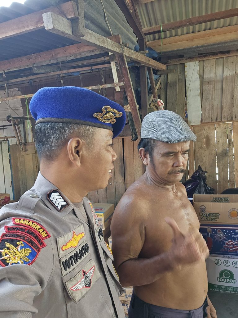 Anggota KP.VI-1010 memberikan himbauan keselamatan kepada tkbm yang sedang bongkar muat barang dipelabuhan pasar rakyat teluk melano agar tetap menjaga keselamatan serta selalu mejaga kamtibmas