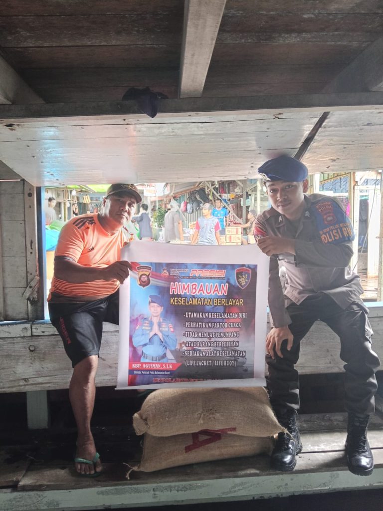 Anggota KP.VI-1010 memberikan himbauan keselamatan kepada tkbm yang sedang bongkar muat barang dipelabuhan pasar rakyat teluk melano agar tetap menjaga keselamatan serta selalu mejaga kamtibmas