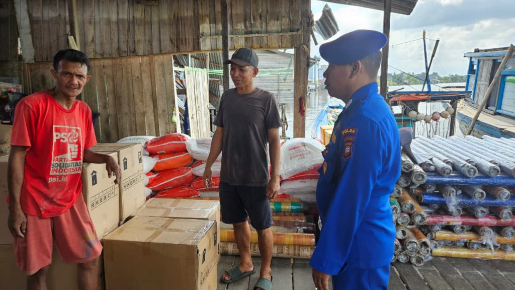 Anggota KP.VI-1010 memberikan himbauan keselamatan kepada tkbm yang sedang bongkar muat barang dipelabuhan pasar rakyat teluk melano agar tetap menjaga keselamatan serta selalu mejaga kamtibmas