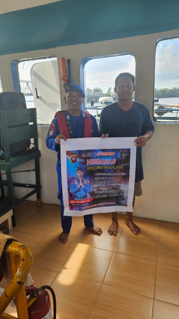 Anggota KP.VI-1010 memberikan himbauan keselamatan berlayar kepada crew kapal yang sedang melintasi alur pelayaran teluk melano agar tetap menjaga keselamatan serta selalu mejaga kamtibmas