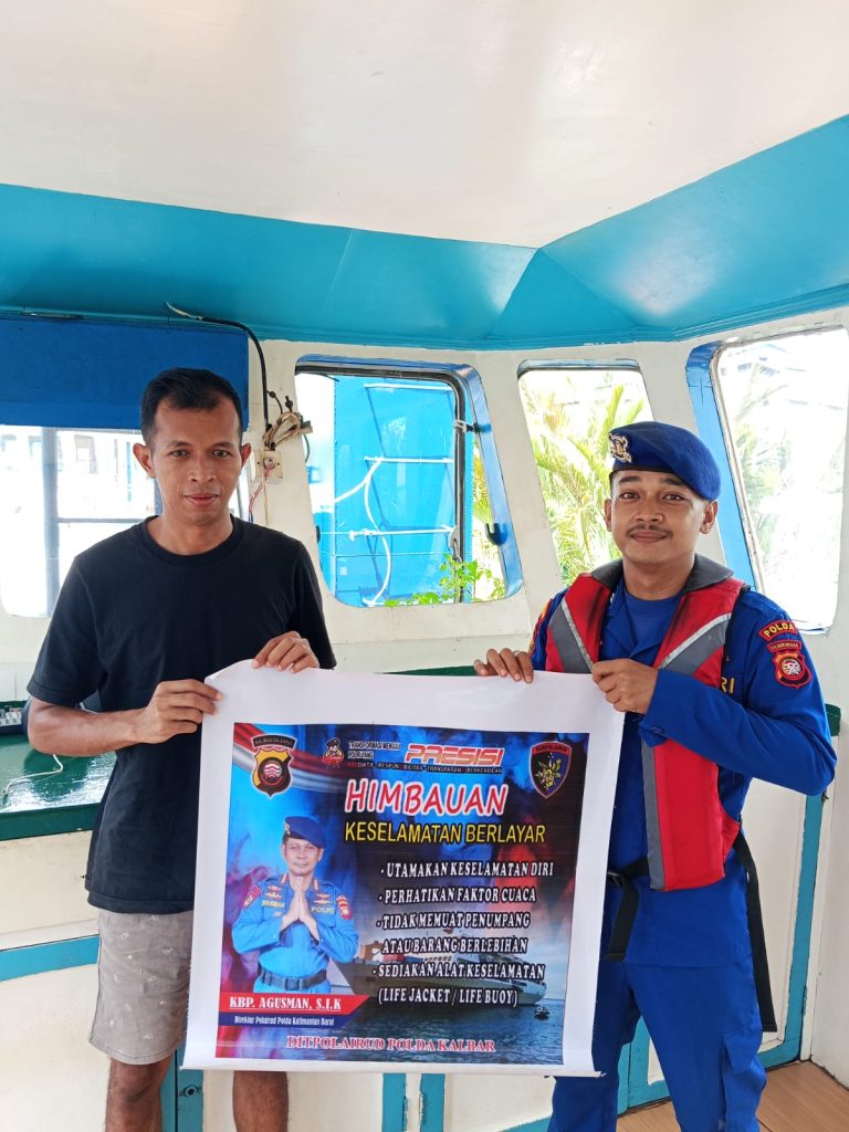 Anggota KP.VI-1010 memberikan himbauan keselamatan berlayar kepada Nahkoda kapal yang sedang melintasi alur pelayaran teluk melano agar tetap menjaga keselamatan serta selalu mejaga kamtibmas