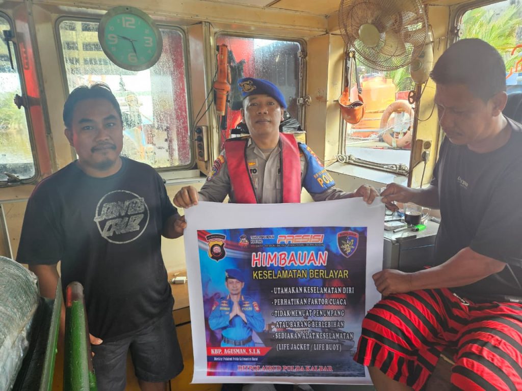 Anggota KP.VI-1010 memberikan himbauan keselamatan berlayar kepada Nahkoda kapal yang sedang melintasi alur pelayaran teluk melano agar tetap menjaga keselamatan serta selalu mejaga kamtibmas