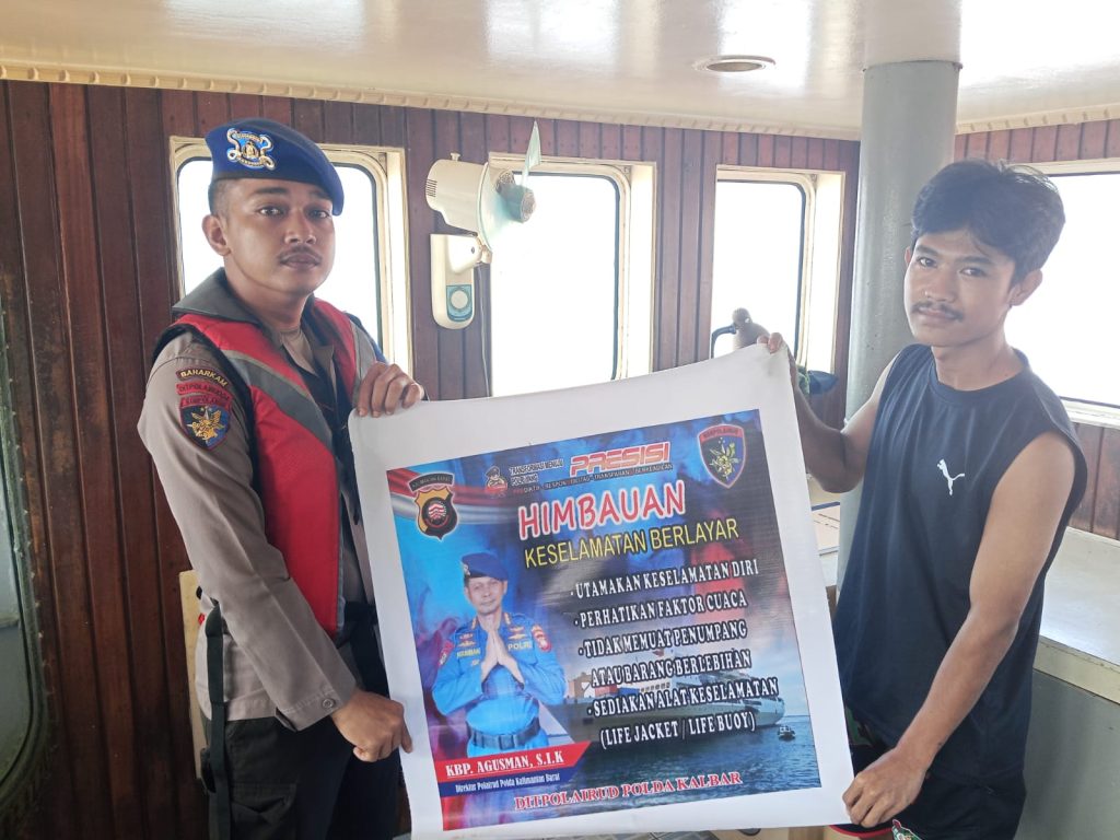 Anggota KP.VI-1010 memberikan himbauan keselamatan berlayar kepada Nahkoda kapal yang sedang melintasi alur pelayaran teluk melano agar tetap menjaga keselamatan serta selalu mejaga kamtibmas