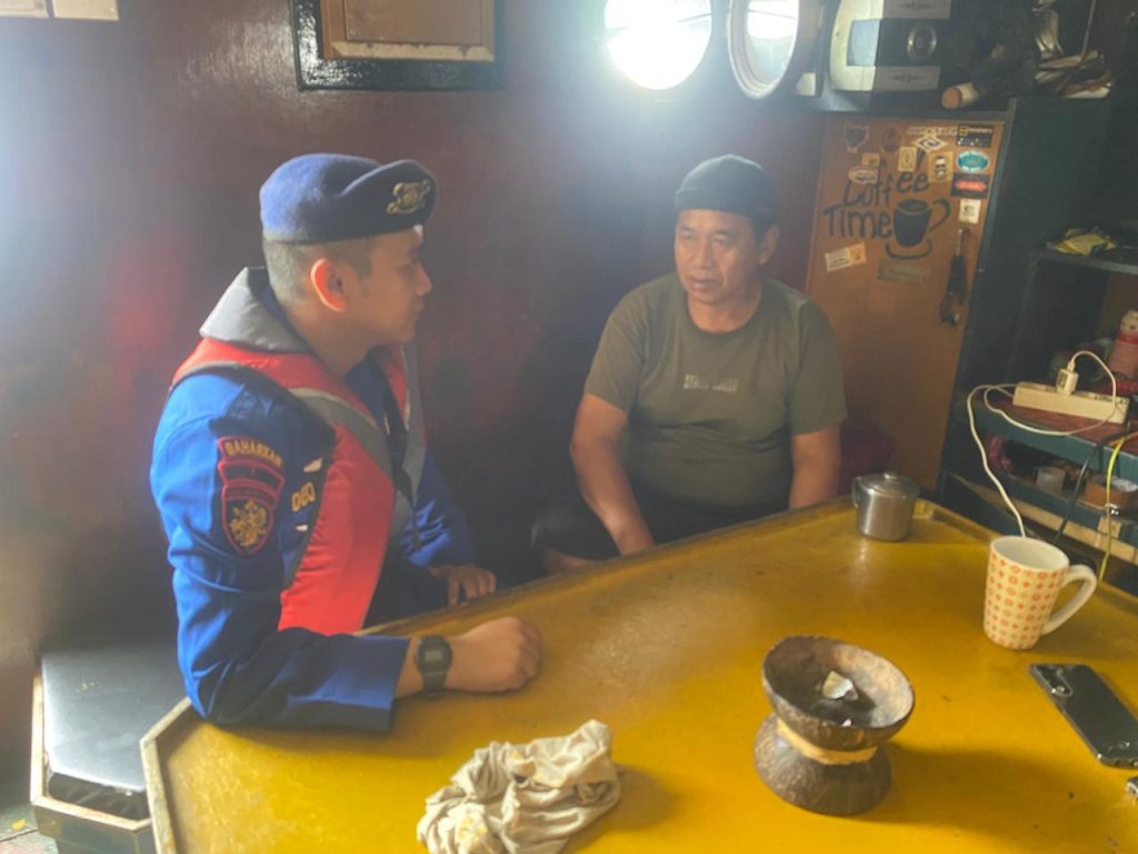 Anggota KP.VI-1010 memberikan himbauan keselamatan berlayar kepada Abk kapal yang sedang melintasi alur pelayaran teluk melano agar tetap menjaga keselamatan serta selalu mejaga kamtibmas