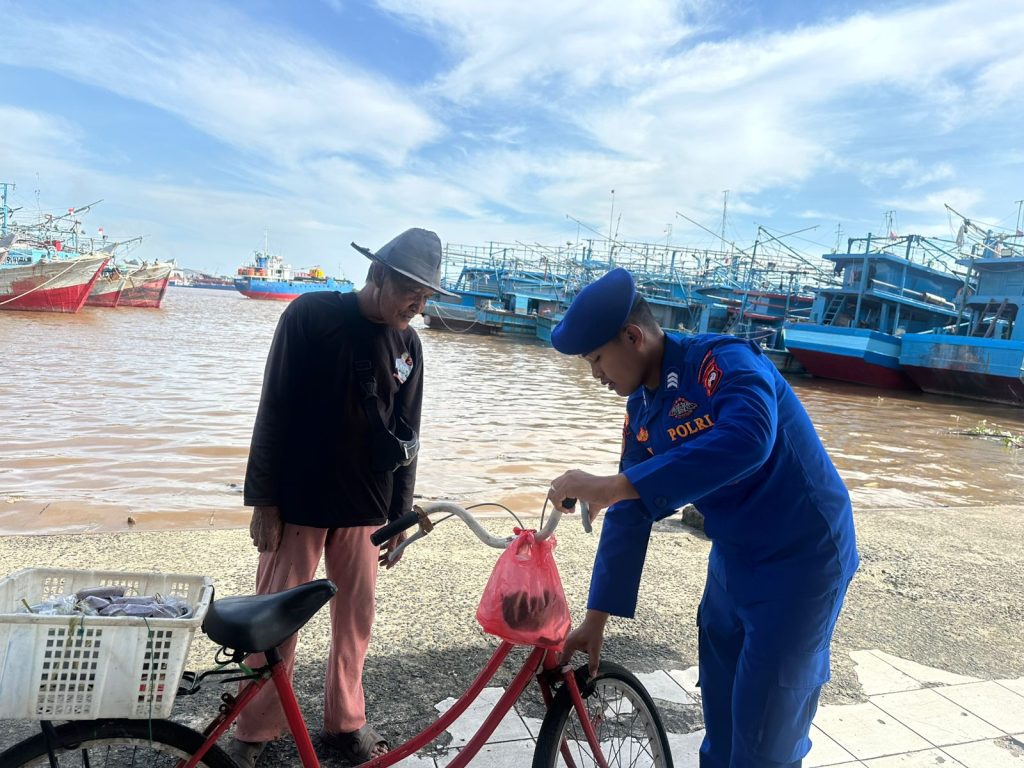 Anggota Polairud Bantu Penjual Kue di Pelabuhan TPI Sungai Rengas