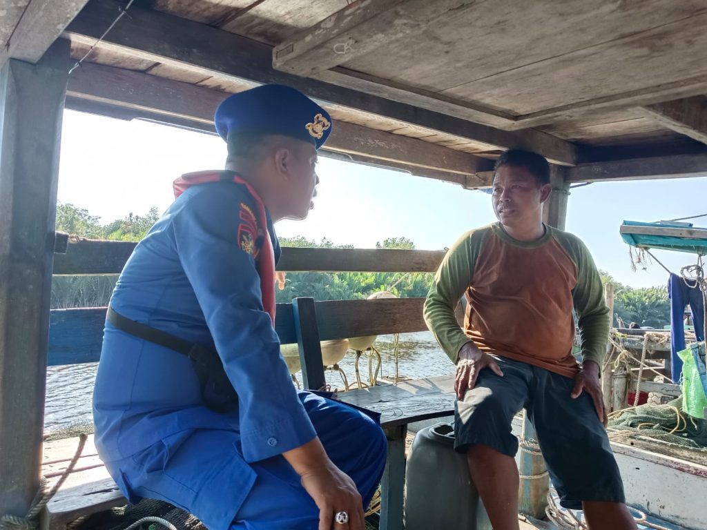 Personel KP.VI-1010 teluk melano mengingatkan kepada nelayan pemancing yang sedang memancing diperairan teluk melano yang bergelombang agar selalu waspada terhadap cuaca buruk