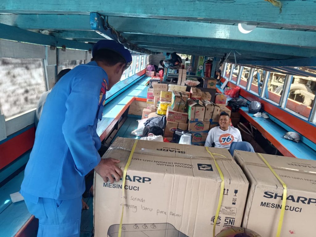 AWASI CEGAH MASUKNYA BARANG ILEGAL PERSONIL KP.VI-10-05 RASAU JAYA MELAKSANAKAN GIAT PEMERIKSAAN MUATAN