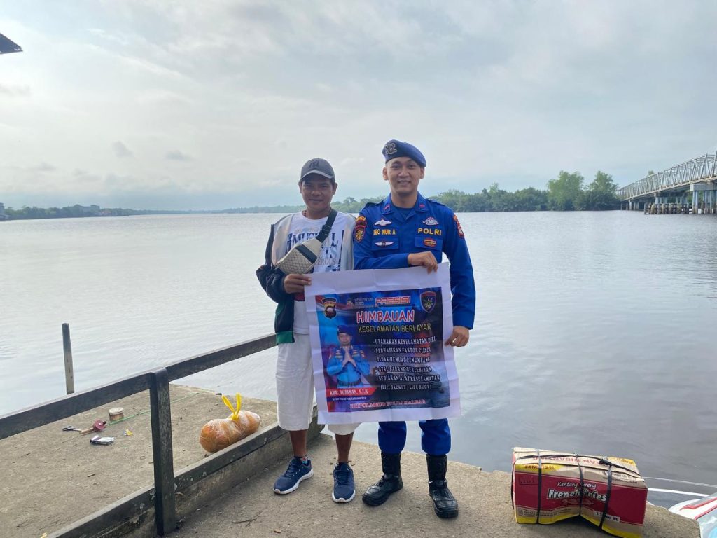 Anggota KP.VI-1010 memberikan himbauan dan binmas keselamatan berlayar kepada Penumpang speed boat yang sedang standbay dipelabuhan teluk melano agar tetap menjaga keselamatan serta selalu mejaga kamtibmas