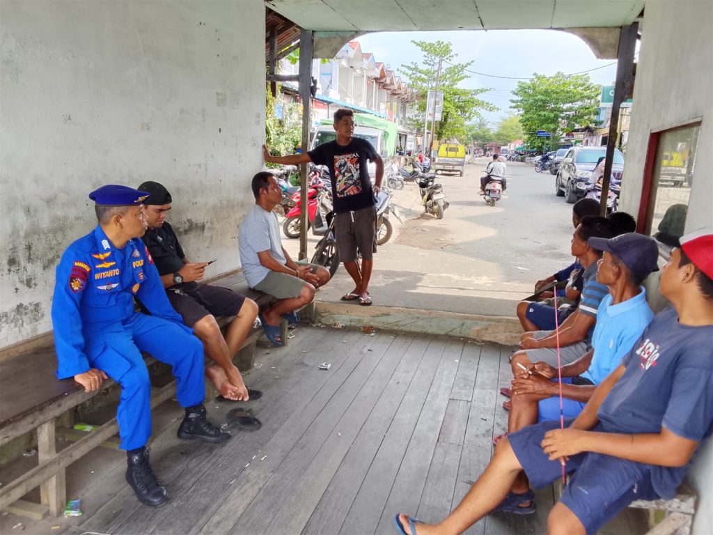 Anggota KP.VI-1010 memberikan himbauan dan binmas keselamatan berlayar kepada Penumpang speed boat yang sedang standbay dipelabuhan teluk melano agar tetap menjaga keselamatan serta selalu mejaga kamtibmas