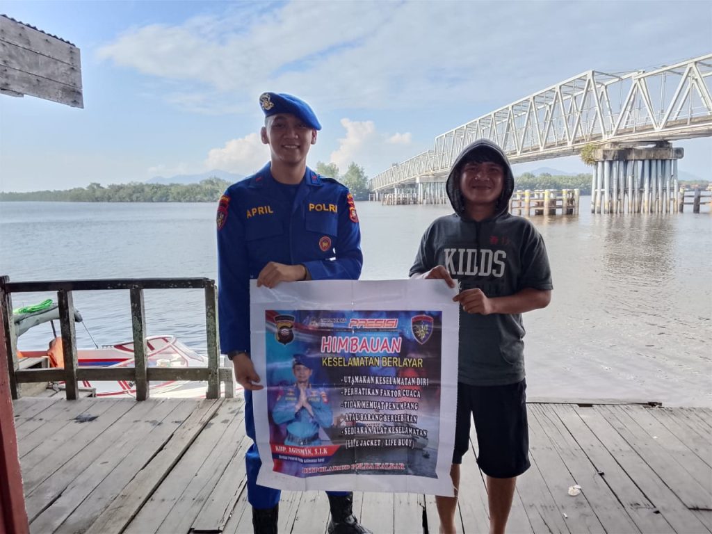 Anggota KP.VI-1010 memberikan himbauan dan binmas keselamatan berlayar kepada Penumpang speed boat yang sedang standbay dipelabuhan teluk melano agar tetap menjaga keselamatan serta selalu mejaga kamtibmas