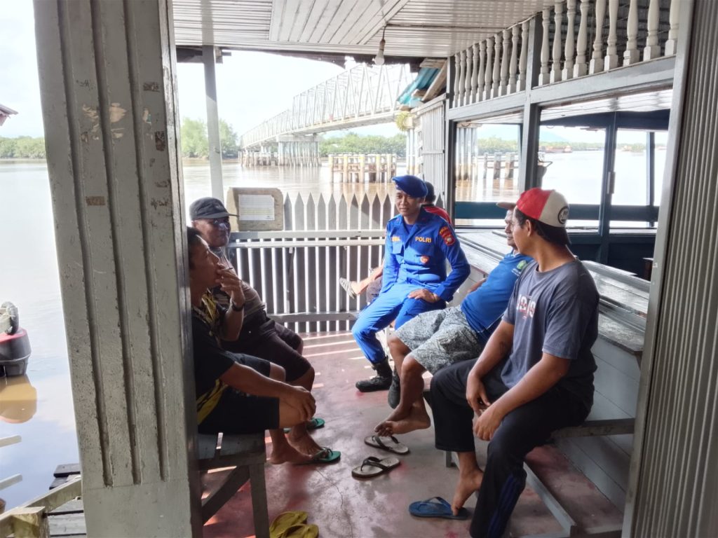 Anggota KP.VI-1010 memberikan himbauan dan binmas keselamatan berlayar kepada Penumpang speed boat yang sedang standbay dipelabuhan teluk melano agar tetap menjaga keselamatan serta selalu mejaga kamtibmas