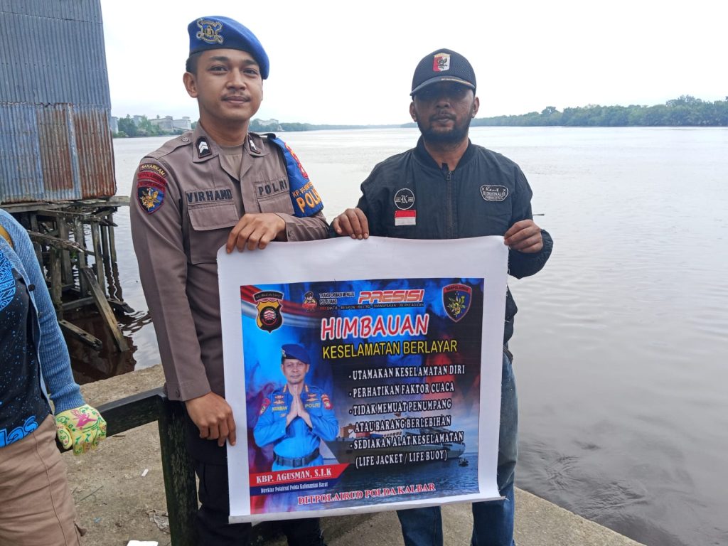 Anggota KP.VI-1010 memberikan himbauan dan binmas keselamatan berlayar kepada motoris speed boat yang sedang standbay dipelabuhan teluk melano agar tetap menjaga keselamatan serta selalu mejaga kamtibmas