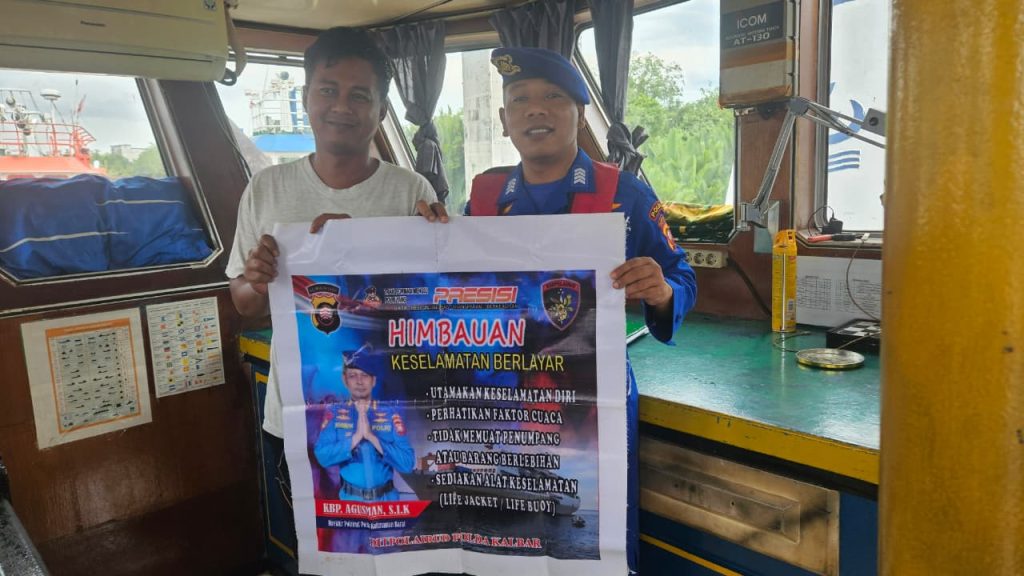Anggota KP.VI-1010 memberikan himbauan keselamatan berlayar kepada Nahkoda Kapal yang sedang melintasi alur pelayaran teluk melano agar tetap menjaga keselamatan serta selalu menjaga kamtibmas