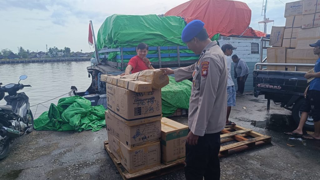 Hari Jumat, 17 Oktober 2025 KP. VI -10-12 Tanjung Pulau melakukan monitoring dan pengecekan barang – barang yang di angkut oleh Kapal tambang untuk memastikan tidak ada muat barang barang berbahaya dan barang ilegal lainya di pelabuhan Kapuas Indah demi terciptanya keamanan dan kenyamanan di dalam pelayaran.