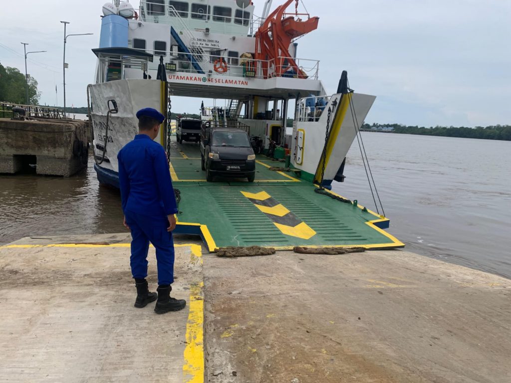 Paloh Sambas, 23 Oktober 2025 – Selain melaksanakan patroli rutin, personil KP. VI-10-11 Paloh juga melakukan kegiatan pengamanan dan pengawasan di area penyebrangan Paloh dengan rute Sungai Sumpit – Ceremai.Kegiatan ini bertujuan untuk menciptakan rasa aman bagi para penumpang yang hilir-mudik, baik pengguna jasa transportasi air maupun masyarakat yang melakukan aktivitas di dermaga. Personil turut membantu kelancaran proses turun naik penumpang dan kendaraan, memastikan semua berjalan tertib dan aman.Kehadiran polisi di tengah-tengah aktivitas masyarakat perairan dipandang sangat penting, tidak hanya sebagai penegak hukum, tetapi juga sebagai pelindung dan pengayom yang memberikan rasa nyaman. Dengan adanya pengawasan ini, potensi gangguan keamanan maupun kecelakaan dapat diminimalisir, sehingga pelayanan penyebrangan dapat berjalan lancar.Hingga kegiatan berakhir, situasi perairan dan dermaga terpantau aman, tertib, dan kondusif.