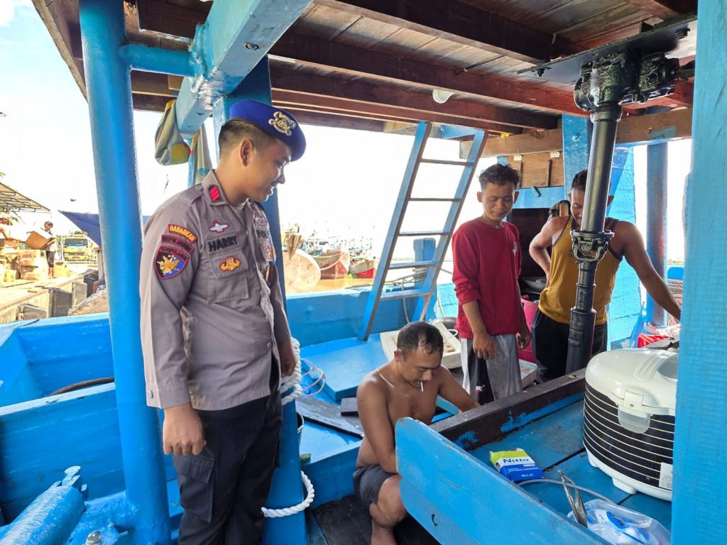 Anggota KP VI-10-18 TPI Sungai Rengas melaksanakan himbauan kepada Abk kapal untuk memastikan keselamatan dan kepatuhan terhadap protokol keselamatan kerja.