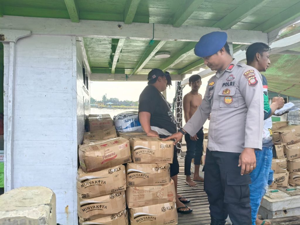 CEGAH MEMBAWA BARANG BARANG ILEGAL KP.VI-10-12 TANJUNG PULAU LAKUKAN PEMERIKSAAN MUATAN KAPAL