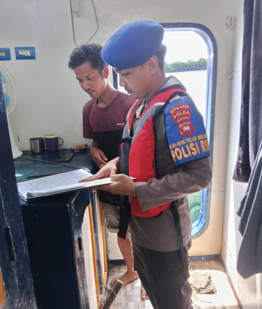 Dalam rangka memastikan keselamatan pelayaran dan kepatuhan terhadap peraturan yang berlaku, Personel KP.VI-10-10 Teluk melano melaksanakan kegiatan pemeriksaan dokumen kapal di wilayah Perairan Teluk Melano. Kegiatan ini dilakukan sebagai bagian dari pengawasan rutin terhadap kapal yang sedang berlayar