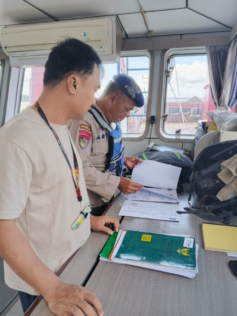 Petugas memeriksa secara teliti kelengkapan administrasi kapal, mulai dari Surat Izin Berlayar (SIB), Surat Ukur, Sertifikat Laik Laut, hingga dokumen identitas nahkoda dan awak kapal. Langkah ini bertujuan untuk memastikan bahwa setiap kapal yang beroperasi memenuhi standar legalitas dan kelayakan, sehingga dapat meminimalisir risiko kecelakaan atau pelanggaran hukum di perairan.