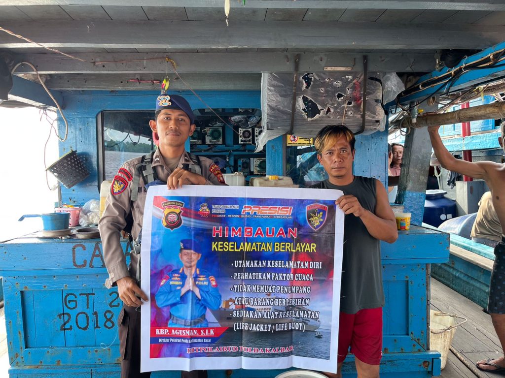 Mempawah – Personel KP. PENATA VI-1006 melaksanakan patroli dialogis di perairan muara jungkat dan menghimbau kepada abk kapal nelayan yang sedang istirahat untuk waspada terhadap cuaca terkini dan Terkait Alat Keselamatan saat berlayar, selasa (21/10/2025).Pada akhir-akhir ini Badan Meteorologi, Klimatologi dan Geofisika (BMKG) memberikan himbauan kepada pengguna jasa perairan untuk selalu berhati-hati sebab pada saat ini cuaca dilaut yang tidak menentu, angin kencang dan curah hujan yang deras sehingga membahayakan bagi pelayaran, Maka dari itu BMKG mengeluarkan himbauan kepada pengguna jasa pelayaran untuk selalu waspada terhadap cuaca dilautSelain itu KP. PENATA VI-1006 juga Menyampaikan arahan dan himbauan Dirpolairud polda kalbar Kombespol. Agusman, S.I.K agar para nelayan selalu mengutamakan keselamatan diri sendiri, memperhatikan faktor cuaca, tidak memuat penumpang atau barang yang berlebihan dan selalu menyediakan alat keselamatan di atas kapal Kegiatan ini bertujuan untuk menghindari hal-hal yang tidak diinginkan seperti kecelakaan pelayaran dan lain-lainnya.