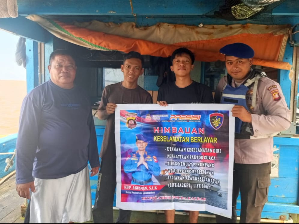 Mempawah – Personel KP. PENATA VI-1006 melaksanakan patroli dialogis di perairan muara jungkat dan menghimbau kepada abk kapal nelayan yang sedang istirahat untuk waspada terhadap cuaca terkini dan Terkait Alat Keselamatan saat berlayar, saptu (25/10/2025).Pada akhir-akhir ini Badan Meteorologi, Klimatologi dan Geofisika (BMKG) memberikan himbauan kepada pengguna jasa perairan untuk selalu berhati-hati sebab pada saat ini cuaca dilaut yang tidak menentu, angin kencang dan curah hujan yang deras sehingga membahayakan bagi pelayaran, Maka dari itu BMKG mengeluarkan himbauan kepada pengguna jasa pelayaran untuk selalu waspada terhadap cuaca dilautSelain itu KP. PENATA VI-1006 juga Menyampaikan arahan dan himbauan Dirpolairud polda kalbar Kombespol. Agusman, S.I.K agar para nelayan selalu mengutamakan keselamatan diri sendiri, memperhatikan faktor cuaca, tidak memuat penumpang atau barang yang berlebihan dan selalu menyediakan alat keselamatan di atas kapal Kegiatan ini bertujuan untuk menghindari hal-hal yang tidak diinginkan seperti kecelakaan pelayaran dan lain-lainnya.