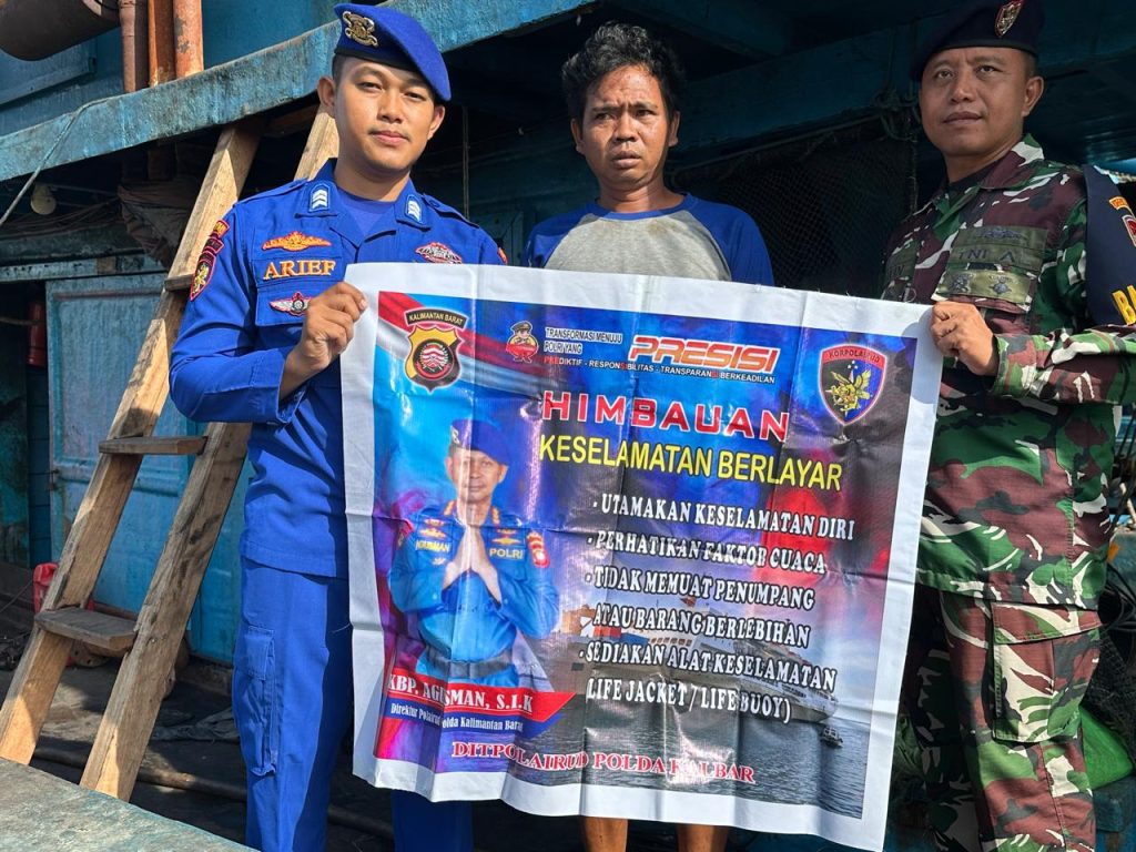 Anggota KP VI-10-18 TPI Sungai Rengas menyampaikan himbauan keselamatan berlayar kepada ABK kapal saat mereka sedang berlayar untuk memastikan keselamatan dan keamanan di perairan.