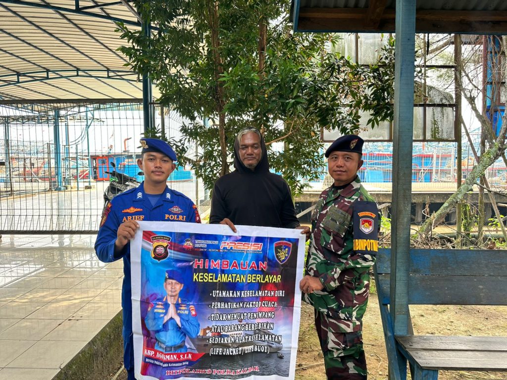 Anggota KP VI-10-18 TPI Sungai Rengas menyampaikan himbauan keselamatan berlayar kepada ABK kapal saat mereka sedang berlayar untuk memastikan keselamatan dan keamanan di perairan.
