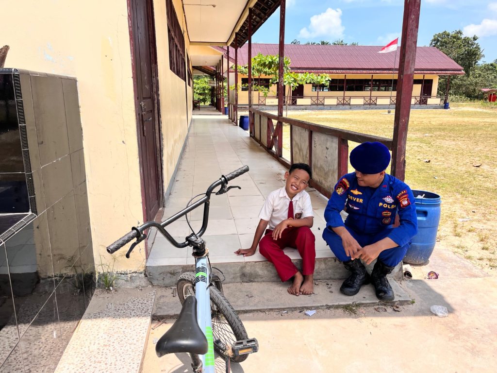 Kepedulian di Jalur Perbatasan: Personel Polairud Paloh Evakuasi Siswa SD yang Mengalami Kerusakan Sepeda